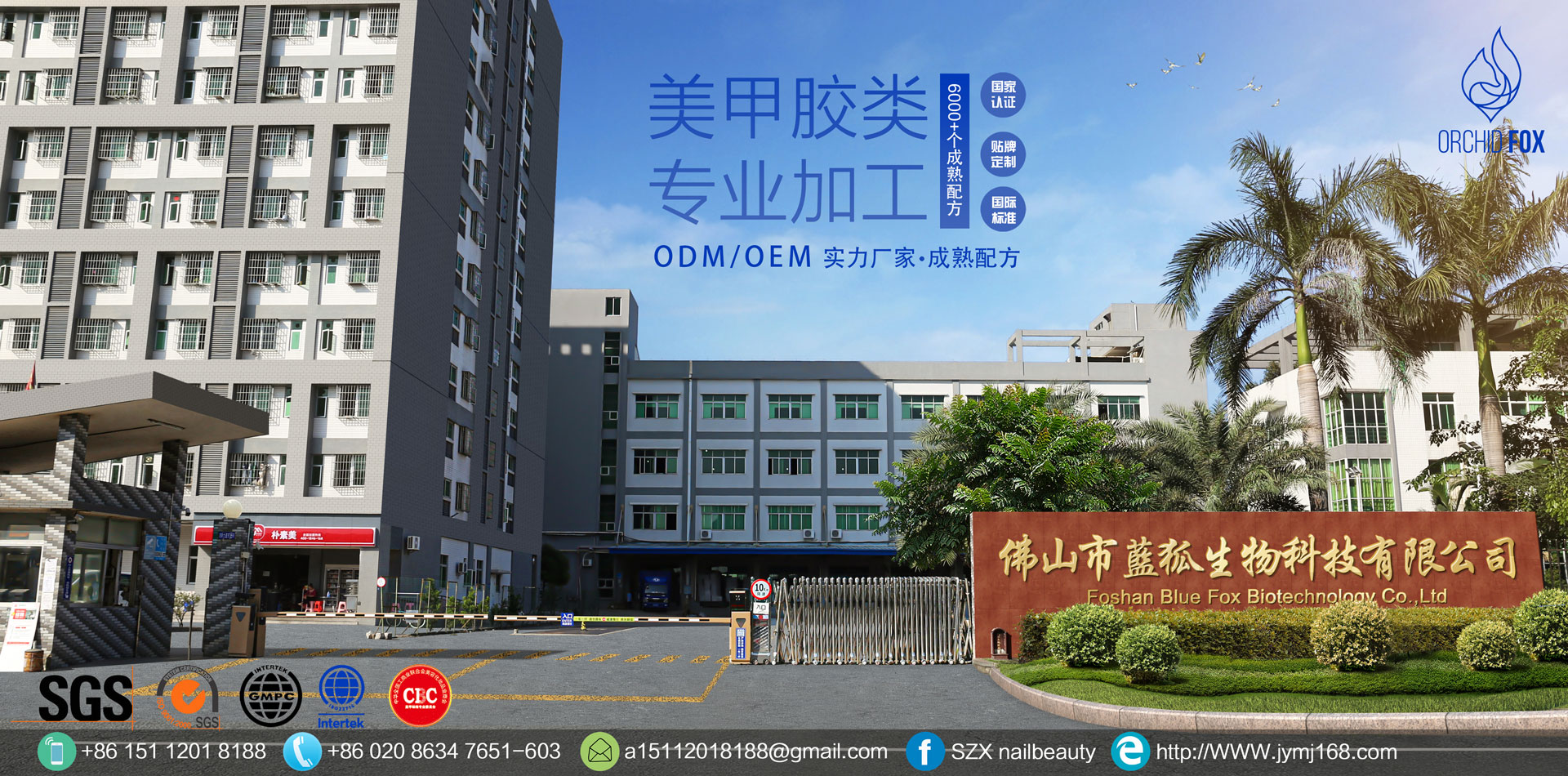佛山市藍狐生物科技有限公司(原廣州甲逸妝品有限公司)位于廣東省佛山市科技工業園內,擁有自主研發的生產基地,十萬級GMP化妝品生產車間,高級實驗室和研發團隊,和商品進出口權,已獲得歐美ISO22716、GMPC質量體系及SGS認證. 公司致力于美甲產品的研發和生產,主要生產美甲膠、指甲油、Polygel、水晶粉、光療延長膠、底膠、封層、各種功能膠及大包裝基料。現公司旗下創立“甲逸 ” “十指繡””SZXvenus””ORCHID FOX”美甲品牌,提供各類美甲OEM/ODM代加工基料及產品備案服務,公司擁有雄厚的科研力量和高效的生產能力,同時在不斷提高產品質量并開發新產品,形成了廣泛的銷售網絡,已得到國內外客戶高度認可。 我們始終追求“以人為本,誠實守信”的經營理念,并貫徹于研發、生產、銷售和售后服務的各個環節。公司堅持開發環保優質的美甲產品,倡導美甲行業健康發展!
